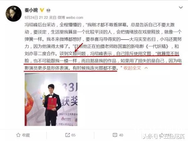 著名演员冯绍峰也谈了自己对文替的看法。
