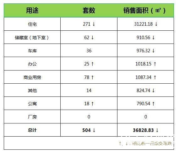 2017年3月29日济南商品房成交504套,成交总面积36828.83㎡。其中住宅成交271套;储藏室(地下室)成交62套;车库成交36套;办公成交25套;商业用房成交78套;其他成交14套;公寓成交18套;厂房成交0套。