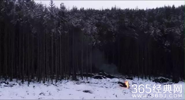 被火点燃的外星人奋力地往雪地里跑,可最终还是被烧成了一堆黑灰。