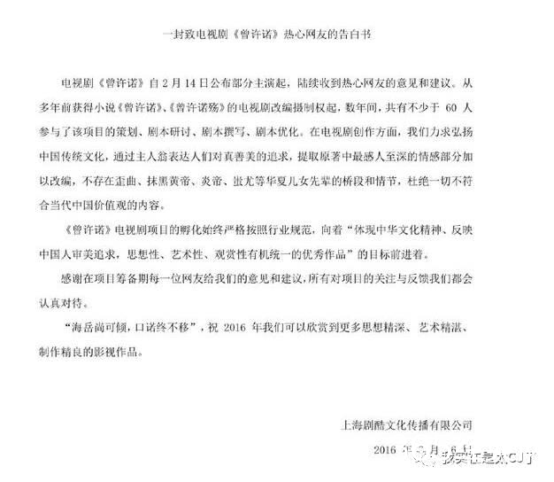 只是在翻拍之初,剧方就发过公告说要提取原作感情部分进行改编,歪曲炎黄先帝的桥段和情节都会被拿下。