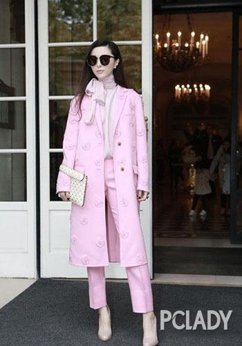 要说这本来就美美的范冰冰女神自从有了爱情的滋润那更是满面春光啊,范冰冰巴黎时装周这身粉嫩套装,女人味十足。刺绣钩花长外套搭配九分裤和裸色高跟鞋,系上粉色丝巾,内搭高领打底衫,拿 着 裸 色 手 包,从内到外都是粉色系,美 丽 动人。