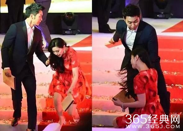 范爷也是够聪明,顺手摆了个求婚的姿势,当时在场的人也是尖叫连连。。。。时候很多网友都夸其机智。。。作为高跟鞋的忠实拥护者,范爷踩着恨天高摔了上头条,成为人生赢家。而且看李晨那一脸紧张的表情,也是让广大围观群众吃了一把好狗粮啊。