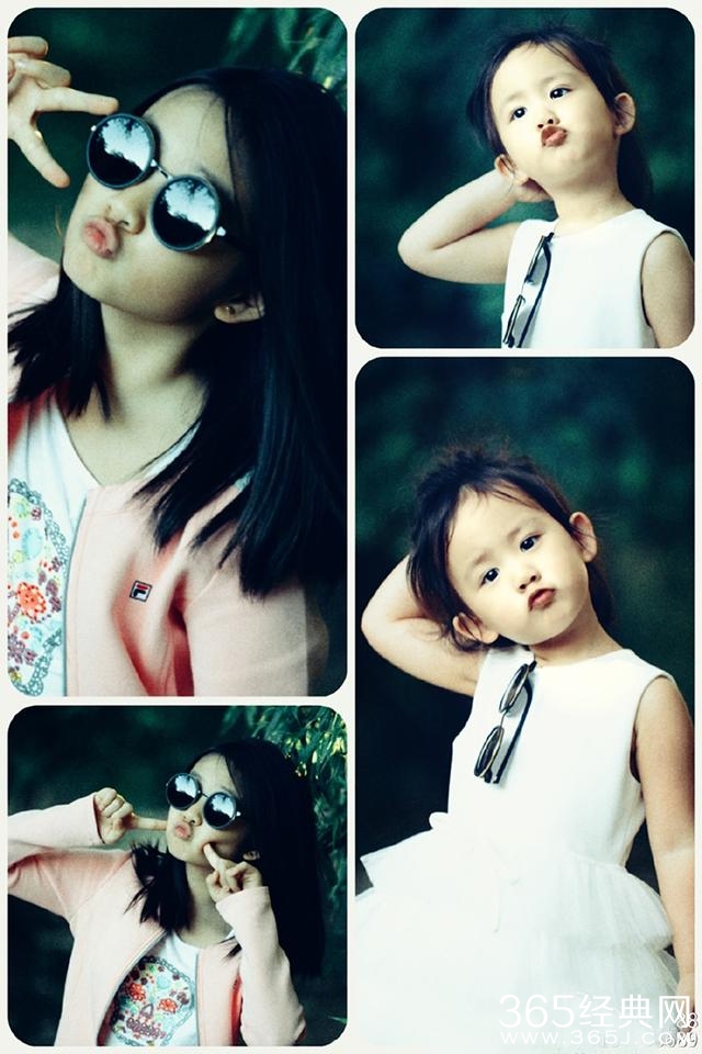 看姐姐戴墨镜,自己也跟着学.......