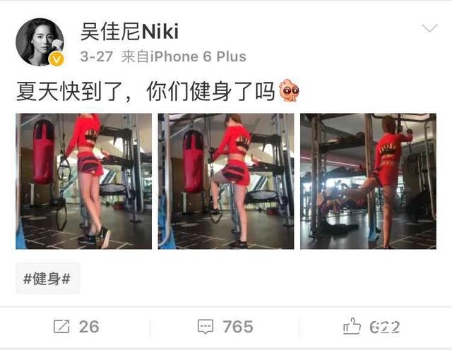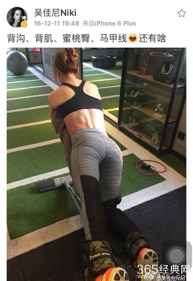 之后12月的时候,吴佳尼突然晒出自己正在健身的照片,之后就是一发不可收拾的,微博里面几乎全是有关健身的动态