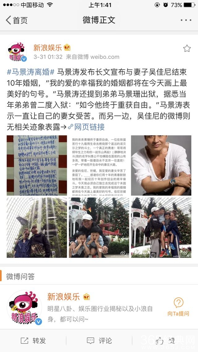 深夜时分,咆哮帝马景涛微博写长文宣布与妻子结束10年婚姻!果然十年婚姻也可以这样结束了,又不相信爱情了~