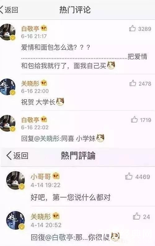 说到关晓彤男友,与她传过绯闻的就是我们的小白白敬亭啦!翻翻微博,都是学长与学妹的互怼日常,简直是相爱相杀啊!