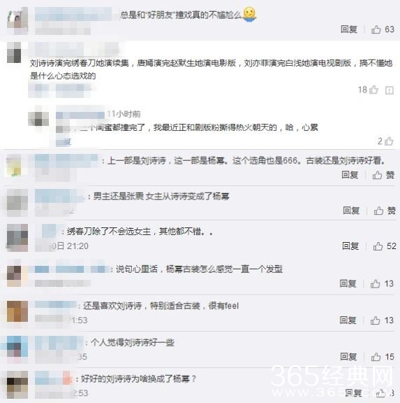 对于影片女主刘诗诗变成杨幂很多网友觉得很不能理解,有网友表示“总是和好朋友撞戏不尴尬嘛”“搞不懂杨幂选戏的心态是什么,总接着唐嫣演电影版赵默笙、接着刘亦菲演电视剧白浅”更是有网友直接怼了出品方 “绣春刀除了不会选女主,其他都不错”