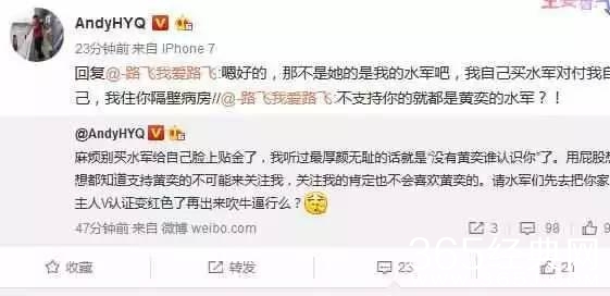 当被抵达撕逼现场的吃瓜群众怼的时候,黄毅清有吐槽人家是黄奕买来的水军,恶意攻击抹黑自己的。