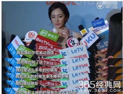 杨幂接受采访时表示:她与刘亦菲两人是好朋友,提前就已经约好了互相不撕,还表示电影上映时也会去支持的。