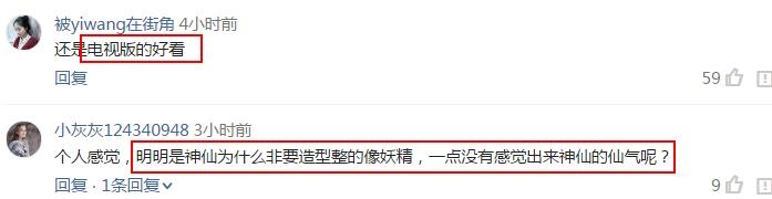 网友表示:明明是神仙为什么非要造型整的像妖精,一点没有感觉出来神仙的仙气呢?还是电视版的好看。