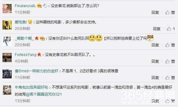 今年1月份,史泰龙确认《敢死队4》今年开机,他告诉粉丝,”我们会尽最大努力,影片将有非常优秀的演员加盟,也有一些伟大的想法,每个人都希望影片有不同的东西,我们会把这些想法呈现出来。”然而辞演的消息一出,令诸多粉丝深感意外。没有史泰龙的《敢死队4》会是神马样子,粉丝能买账么。