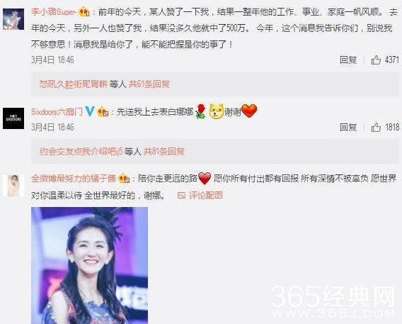 然而在微博下面,甜馨妈妈李小璐评论了谢娜的这条微博,她写道:“前年的今天,某人赞了一下我,结果一整年他的工作、事业、家庭一帆风顺。 去年的今天,另外一人也赞了我,结果没多久他就中了500万。 今年,这个消息我告诉你们,别说我不够意思!消息我是给你了,能不能把握是你的事了!”