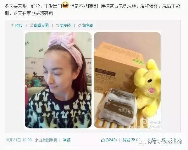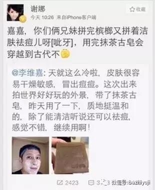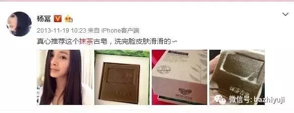 大幂幂现在微博推广都是兰蔻、雅诗兰黛啥的这种高逼格产品了,前几年的时候还接过一个“抹茶古皂”记得不?