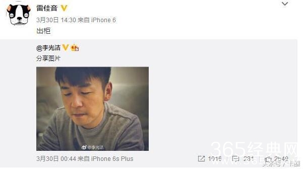 雷佳音公开微博说出柜,对象居然是李光洁?