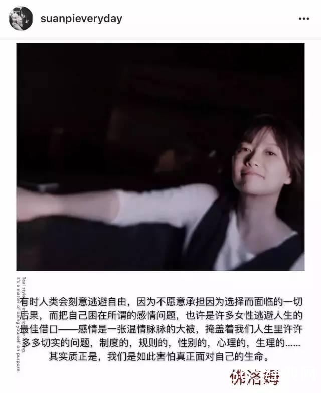 因为初心不一样,很多女孩子不断找爱情,是匮乏;徐静蕾不断找爱情,是因为想了解自己。
