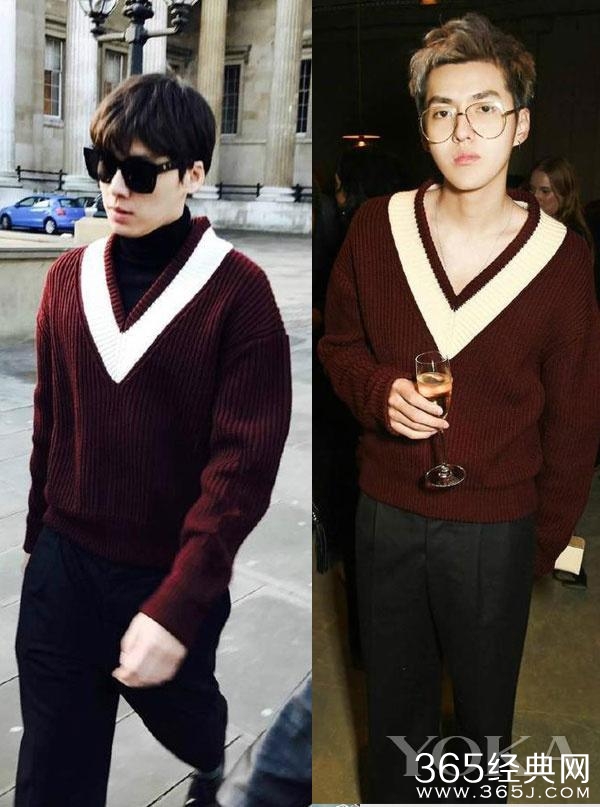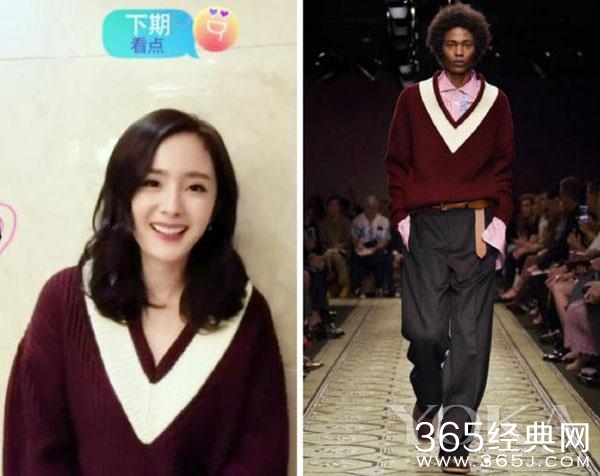 在《快乐大本营》预告片中,杨幂身穿Burberry 2016九月系列V领针织衫亮相,是的,大幂幂又穿男款了,而且还与两大帅哥撞衫。