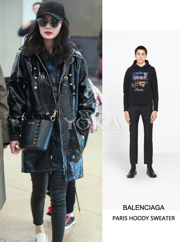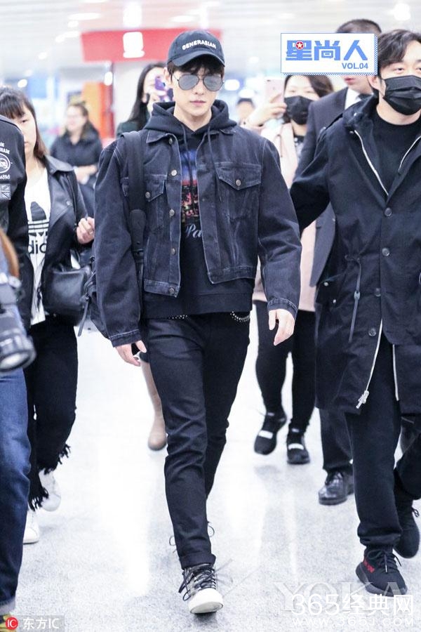 杨洋身着Balenciaga黑色牛仔外套和帽衫 ,搭配黑色长裤,低调现身机场,黑色系装扮依旧帅酷。