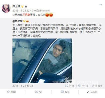 凤姐指林更新比王思聪帅,表白林更新