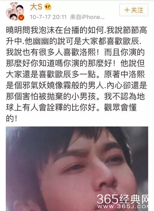 播完好久以后,遇到了大S还要再强调一遍自己像欧辰多一点。搞得网友都很无奈,毁了《泡沫之夏》还没找你算账呢!