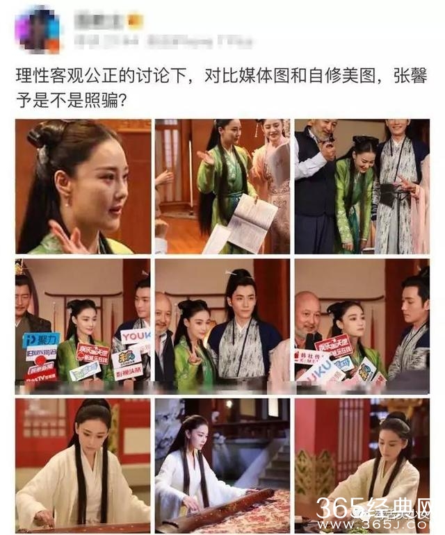 一搜,还真又有人拿着视觉中国的无修图和工作室的美图作对比问张馨予是不是照骗了呢……