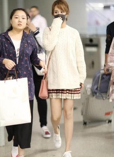 今日杨紫现身首都机场,大露美腿,米色的套头针织非常温暖阳光,内搭的格纹百褶裙非常苏格兰风格。