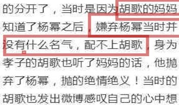 在后来,胡歌杨幂一起出席在综艺节目,当时杨幂看都不想看胡歌,眼角还红红的,你就知道胡歌当时把杨幂伤的有多深,伤的有多痛!胡歌也有尝试跟杨幂互动,当时杨幂并没有回应胡歌。
