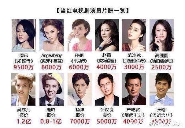↓↓↓看一下明确的当红明显片酬表:baby8000万,鹿晗吴亦凡都过亿,杨洋7000万