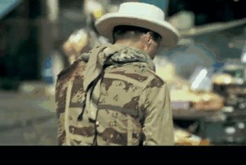 他扛火箭炮,脸蒙口罩,边走边沉着眼往后瞅。每一帧都迸发着复仇的因子,气场横到炸裂。