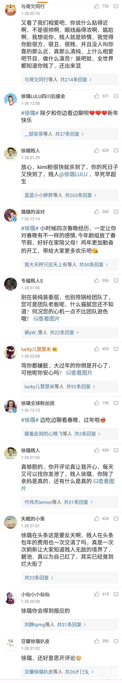 今天小编想说说说徐璐,,之前无聊去徐璐的微博看了看,天了噜,不管她发的是什么内容,总会有网友在下面骂她。