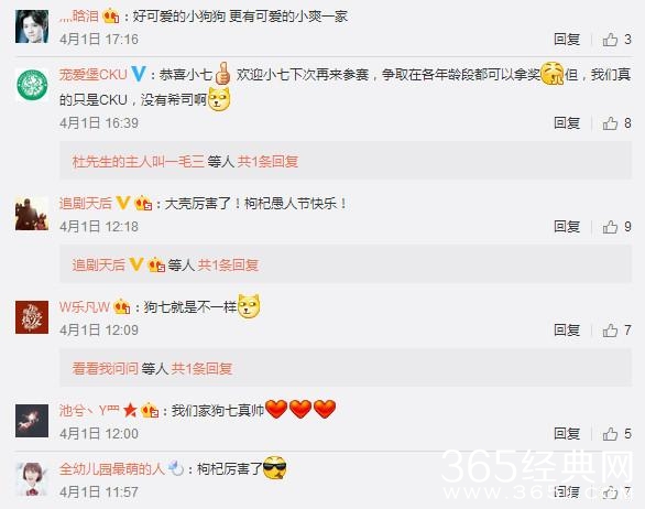 粉丝纷纷留言夸赞狗七,“小七很争气,主要妈妈教育的好,最主要还是有个好爸爸”“一家都是高颜值,就连养个狗都这么拉风”,“霸气!狗爷!就这获奖姿势!盛世美颜啊!”描写春天的句子