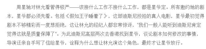 周星驰为了林允出演这部电影,让迪士尼的高层两次去香港开会,做了很多工作。