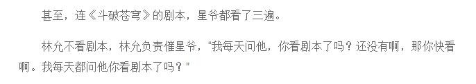 林允在接受专访的时候说,她不看剧本,她的工作是催周星驰看剧本。