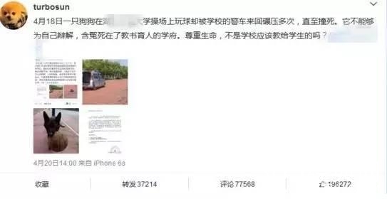 她还在微博上斥责过某大学的流浪狗被车撞死的事。