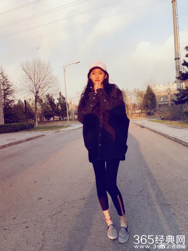 正是夕阳西下收工回家的时候,关晓彤穿着牛仔外套,头戴棒球帽,看起来青春洋溢