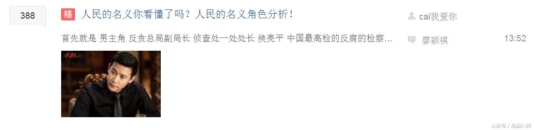 最近,号称“邀请了大半个娱乐圈的老戏骨”的“自黑”大剧《人民的名义》,正在湖南卫视播得如火如荼,网上关于几位主演官职的讨论也相当热烈,不仅话题不断,单单是一个“角色分析”贴就在贴吧盖了将近400层楼!