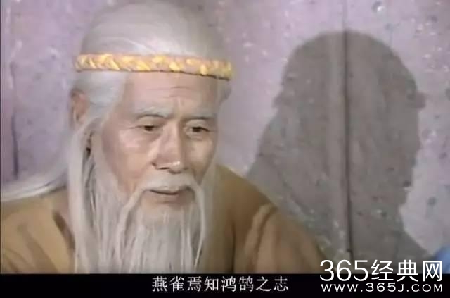该句出自西汉史学家、散文家司马迁所著《史记·陈涉世家》:“陈涉叹息曰:‘嗟乎,燕雀安知鸿鹄之志哉!’”意思是燕雀怎么能知道鸿鹄的远大志向,比喻平凡的人哪里知道英雄人物的志向。而在1990年版的电视剧《封神榜》中,姜子牙化用此句比喻其妻子不理解他的志向,明显也“穿越”了。