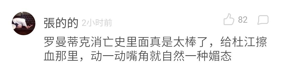 在前不久上映的《罗曼蒂克消亡史》这部电影当中,霍思燕和老公杜江也有对手戏。网友评价给霍思燕“给杜江擦血那里,动一动嘴角就自然一种媚态”