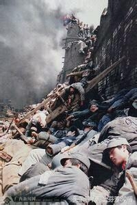 太行山上,最经典的片段。这几位睁着眼睛的军人已经阵亡了:
