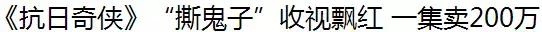 以“手撕鬼子”引发强烈吐槽的《抗日奇侠》收视飘红,一集就卖到200万。