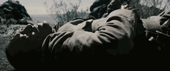 《硫磺岛家书》中的栗林忠道,在美军漫天炮火的进攻下,即使身负重伤也在坚守阵地。