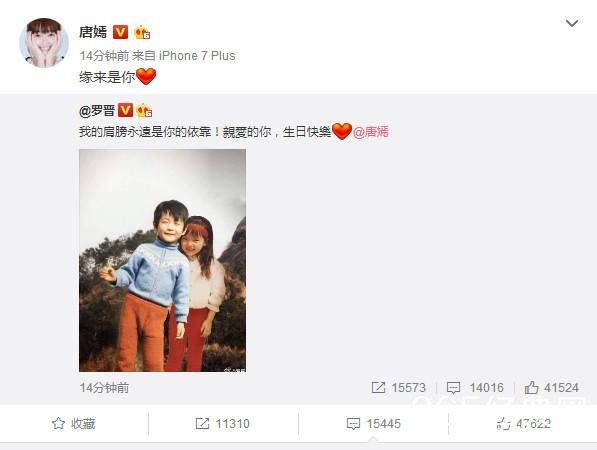 罗晋用两人的小时候的照片P一块,在糖糖生日当天发微博,说着永远是糖糖的依靠!糖糖好幸福呀!
