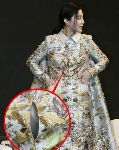 其中一张范冰冰穿一身华服亮相,却难掩盖那微微鼓起的小腹,在她落座时候衣服胸前扣子忍受不了压力突然崩开