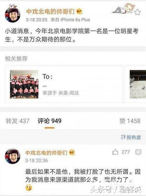 根据爆料夏之光放弃了北京电影学院,上海戏剧学院排名第三。