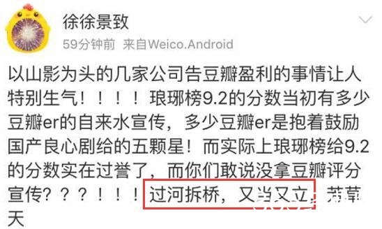 「可当初你们拿豆瓣评分和剧评刷收视的时候,怎么不提这回事儿呢???」