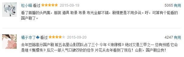 而在国产剧里,《琅琊榜》在一众烂片里的异军突起,也是归功于群众之间的互相安利,评论区从一开始就是一片好评——