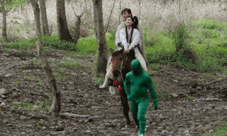 在绿幕场景中拍摄的,这马好像也是假的!