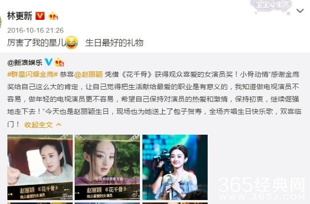 而且无论在任何时候,就算《楚乔传》拍完后,林更新依旧叫赵丽颖“星儿”。就在生日当天赵丽颖荣获了金鹰奖,林更新转发了微博,只是这一声“我的星儿”,实在是有些甜啊~而wuli颖宝也曾在某节目中自 爆她和林更新私下的关系也很好。