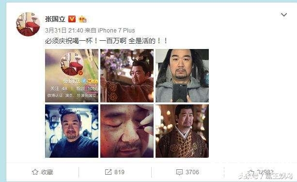 而最近,张国立又发微博说自己微博有100万的真粉,全是活的,一句话道出了明星微博的乱象,时下一些明星动不动就微博粉丝动不动就近1亿,全中国13亿人,每13个人中就有你一个粉丝,娱鸡真不信。