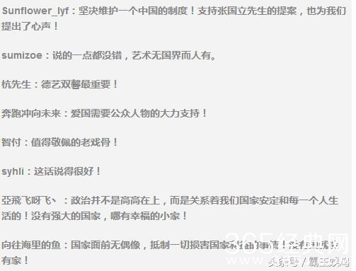 再说张国立,张国立在2017年两会上说,“也有那么极个别的人,他们是挣完这边的钱,回去就骂,对这样的人要封杀。”
