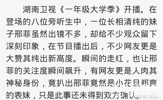 去网上搜了下资料,发现这个94年的小花曾经参加过《一年级·大学季》,当时媒体对她的称呼是郑爽“表妹”。